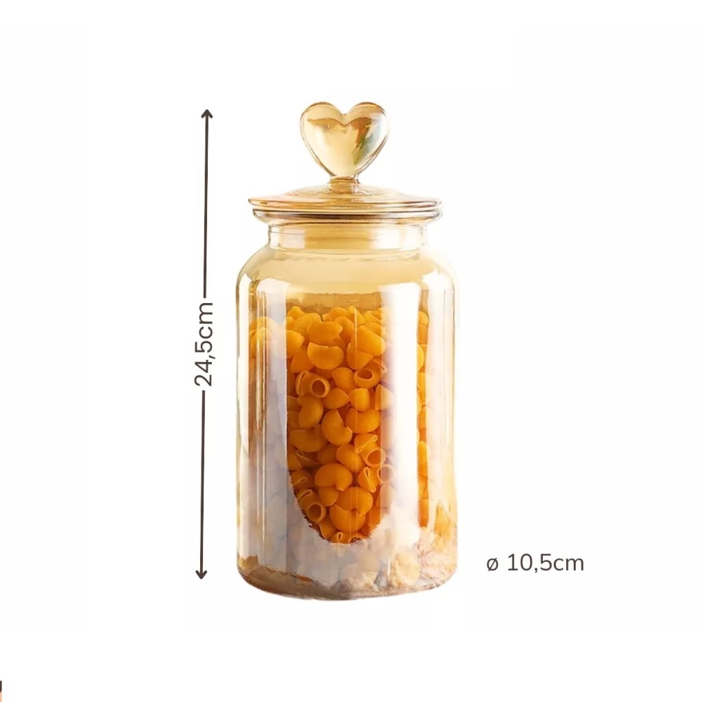 Pote de Vidro Hermético Âmbar Coração 1310ml Decor Afeto Porta Mantimentos Decorativo Cozinha