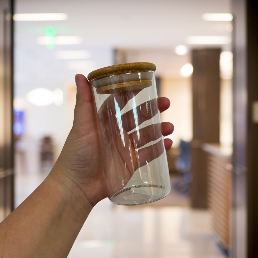 Pote de Vidro Hermético com Tampa de Bambu - 13x7cm - 320ml - 1 unidade - Rizzo
