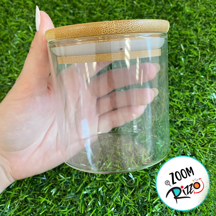 Pote de Vidro Hermético com Tampa de Bambu - 8x8cm - 290ml - 1 unidade - Rizzo