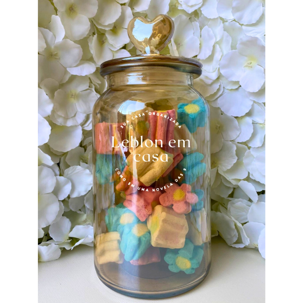 Pote de Vidro Hermético com Tampa de Coração Âmbar - Ideal para Presente e Decoração