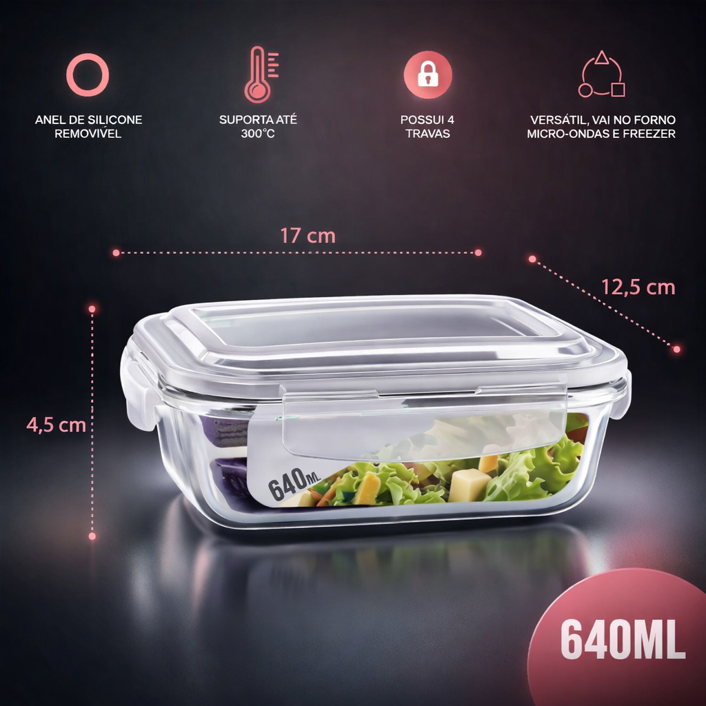 Querendo trocar seus Potes de plástico por um pote de vidro com alta qualidade, resistência, durabilidade e fácil de limpar? Então me acompanhe nessa leitura e surpreenda-se com os Potes de Vidro Hermético: Existem muitos malefícios que podem ser causados devido ao uso do plástico para preservar os seus alimentos. Sabia que quando aquecido, ele pode liberar toxinas sobre a sua comida? Isso pode causar doenças graves com o passar do tempo. Sem falar nas manchas de alimentos que ficam no pote de plástico, não é mesmo? Com os Potes de Vidro Hermético, você não estará sujeito à isso. Além de serem muito resistentes, eles também suportam a variação de temperaturas em até 300ºC, podendo ir ao freezer e micro-ondas. São muito fáceis de serem lavados, pois possuem o anel de silicone para vedação removível, não deixa o cheiro se espalhar e sem qualquer risco de vazamento, mantém o pote super vedado! A nossa equipe é especializada em identificar produtos que aliam qualidade, preço acessível e que de fato, resolvam algum problema. São muitos anos comercializando produtos para sua casa, sabemos como atender suas necessidades com muita dedicação e amor pelo trabalho. =) Aliando qualidade, praticidade e preço justo, apresentamos o Pote de Vidro Hermético. O Pote ideal para o seu dia-a-dia. Diferenciais --- • Anel de silicone removível • Possui 4 super travas • Mantém os alimentos frescos por mais tempo • Suporta uma variação térmica de até 300°C (não é indicado dar choque térmico) • Evita que o cheiro se espalhe devido a sua super vedação • Vai ao forno convencional (sem a tampa), forno elétrico (sem a tampa), microondas (sem a tampa) e freezer • Tampa livre de BPA (Bisfenol A), ou seja, não é tóxica • Fácil de limpar e higienizar, pois pode tirar o anel de silicone e vedação para limpeza • Sem risco de vazamento devido a sua super vedação • Super resistente, Vidro Borosilicato