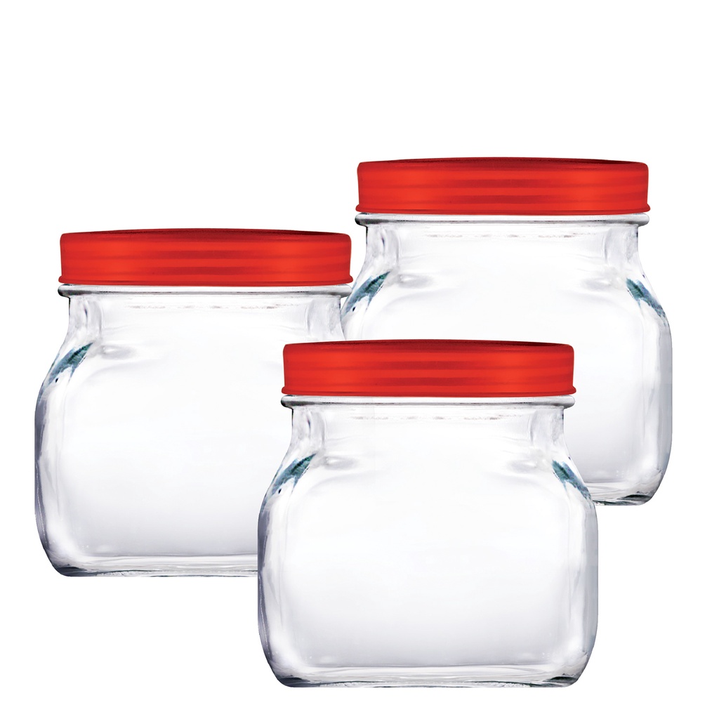 Pote de Vidro Quadrado P Tampa de Plástico Vermelho 3 Peças - Ruvolo