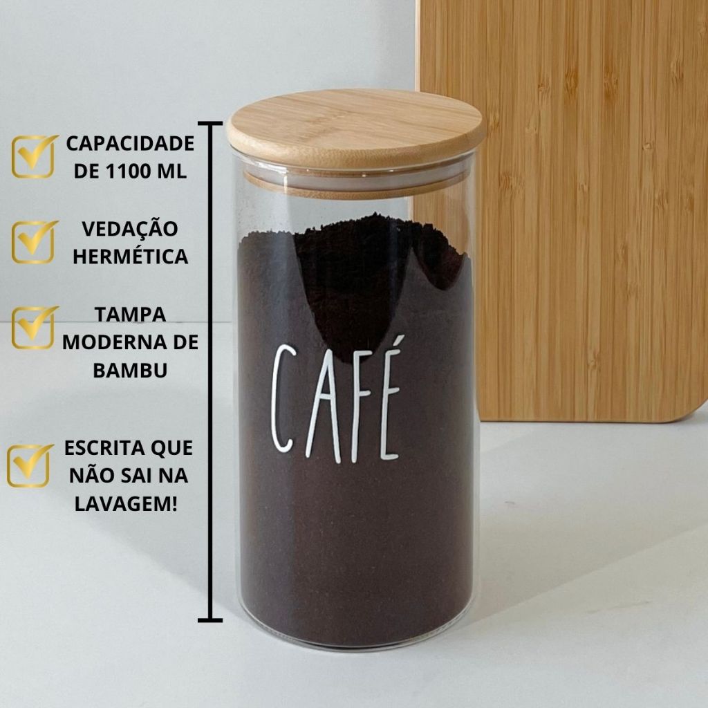 | Pote de vidro redondo para café com tampa hermética de bambu 1,1L este produto | R$ 39,90 | 60% | 5.0/5 | 22 |