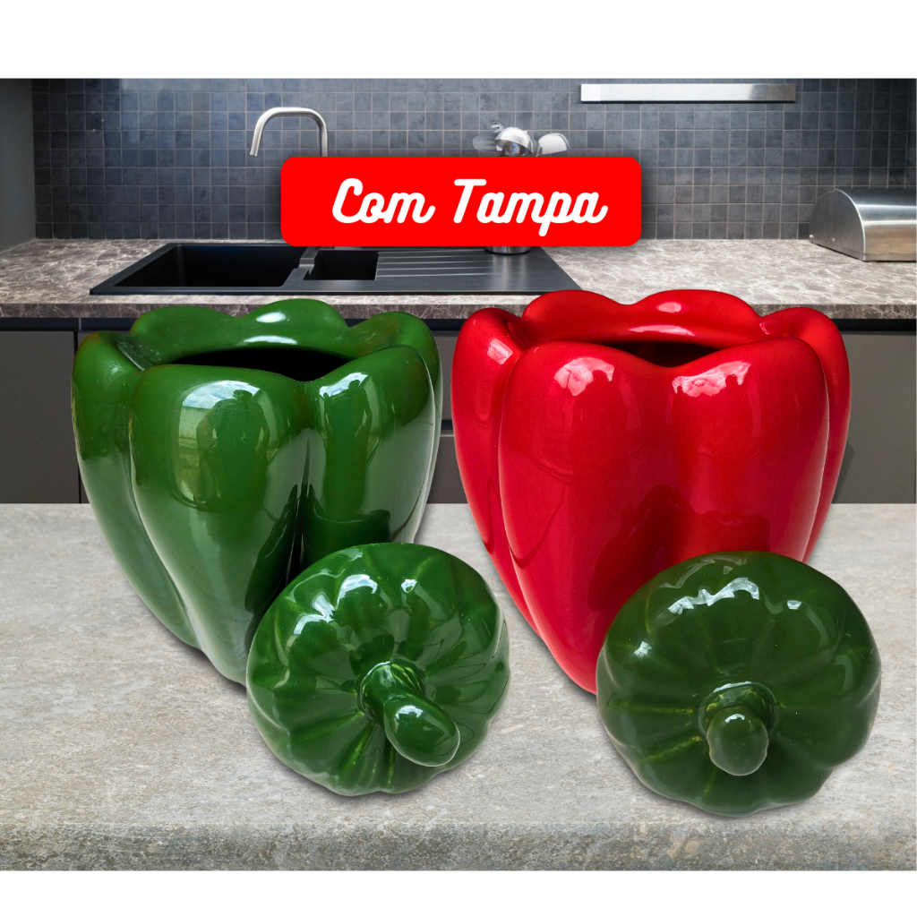 Pote Decorativo Com Tampa Pimenta em Cerâmica Gourmet Pimentão Premium
