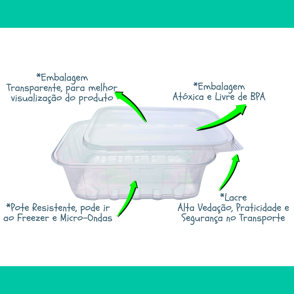 Pote Descartável 500ml Retangular Freezer Microondas Marmita Fitness Empilhável Reutilizável 24 Und