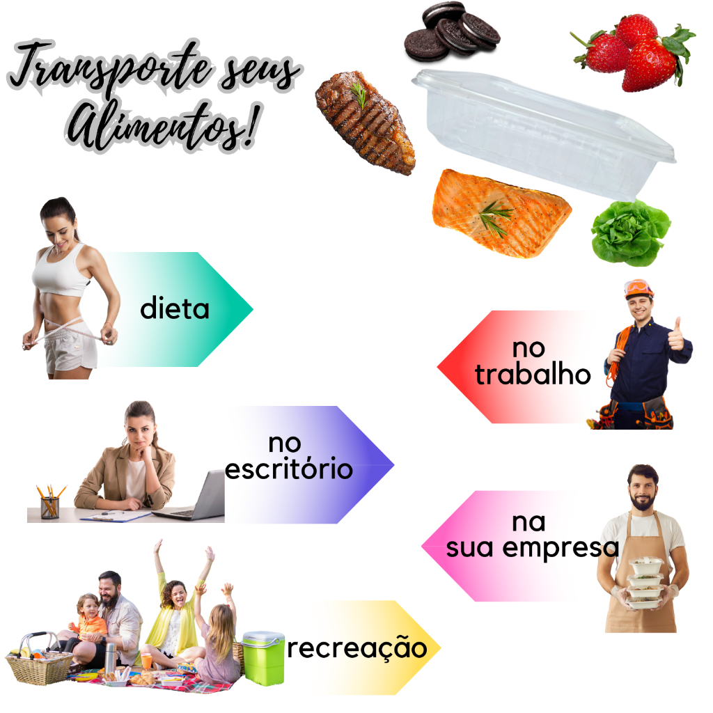 Pote Descartável 750ml Retangular Freezer Microondas Marmita Fitness Empilhável Reutilizável Tampa