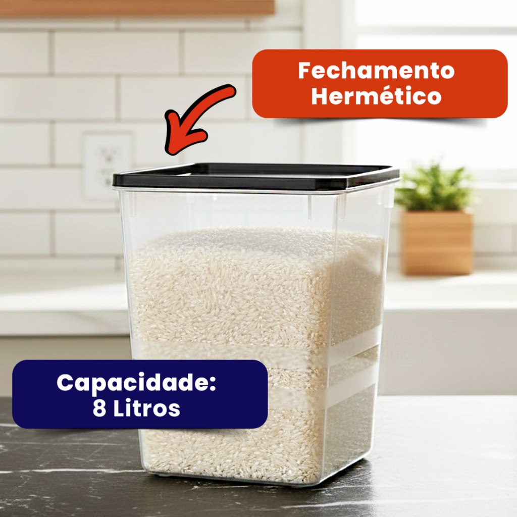 Pote Hermético 8 Litros para 5 Kilos de Arroz Mantimentos Cozinha Dispensa 100% Vedação Resistente 1 Peça