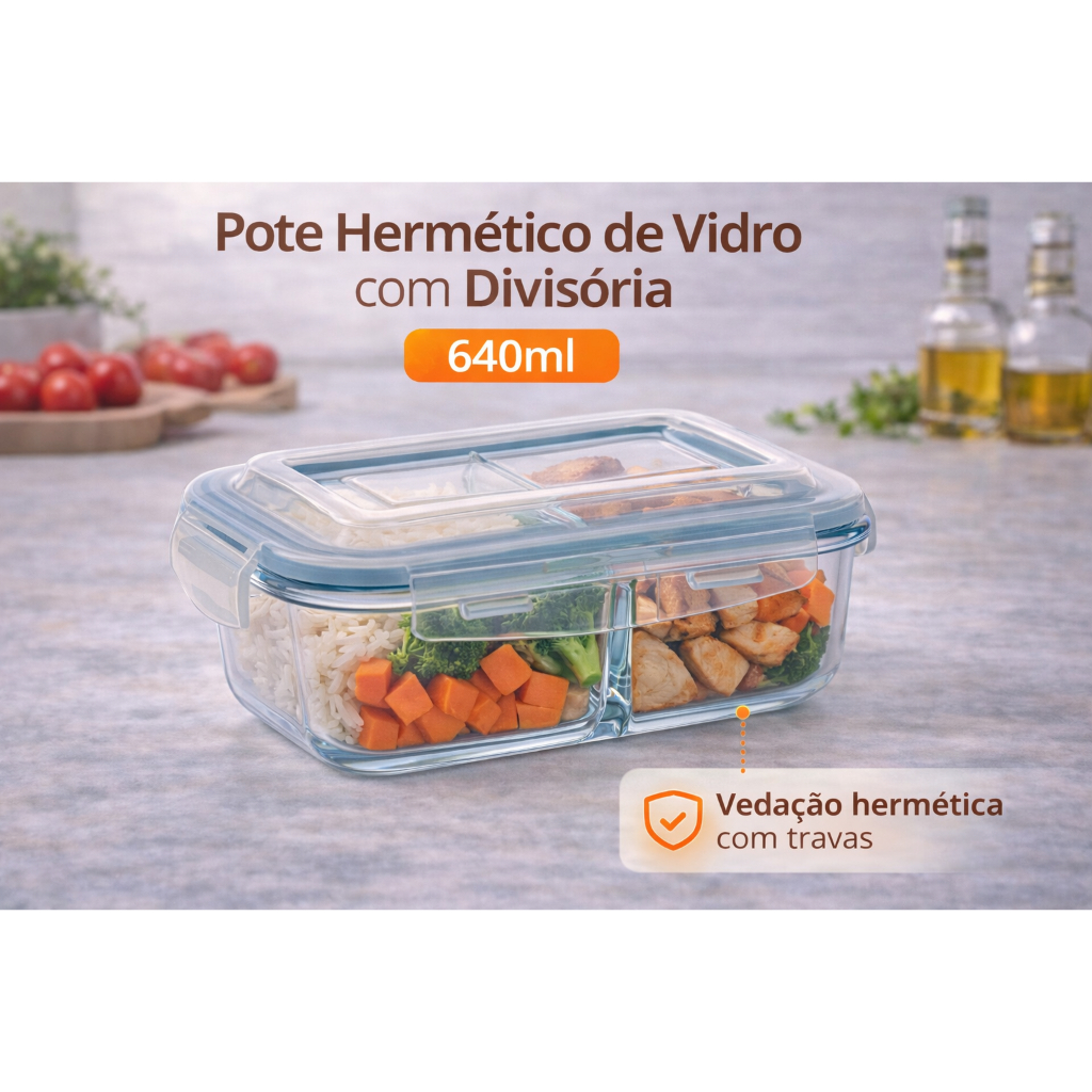 | Pote Hermético de Vidro com Divisória 640ml Tampa Plástica Retangular este produto | R$ 28,55 | 43% | 4.7/5 | — |