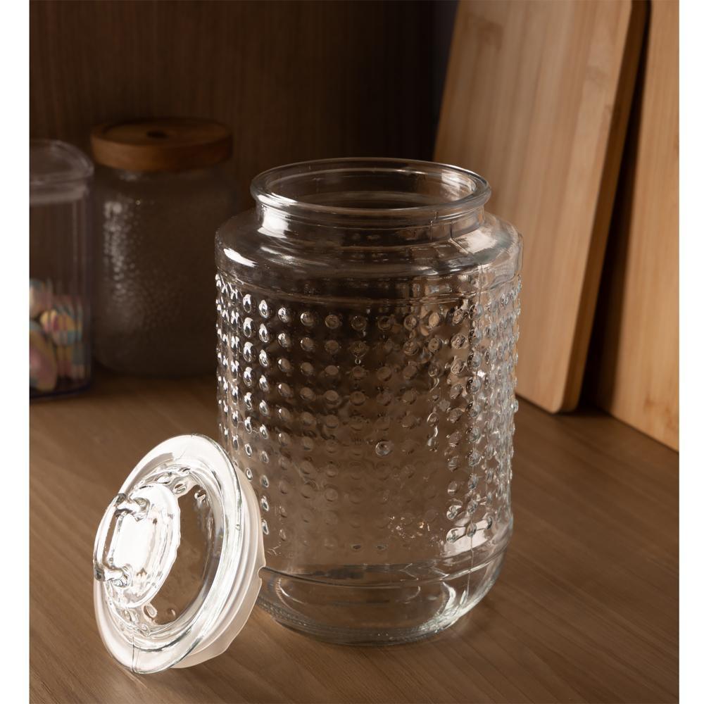 Pote Hermético Lyor Poá 2L Vidro Contém: 1 Pote Hermético Medidas Produto: Altura 23,70cm x Largura 13,50cm x Comprimento 13,50cm Peso: 0,89Kg Lavar com detergente neutro, esponja macia e secar imediatamente.