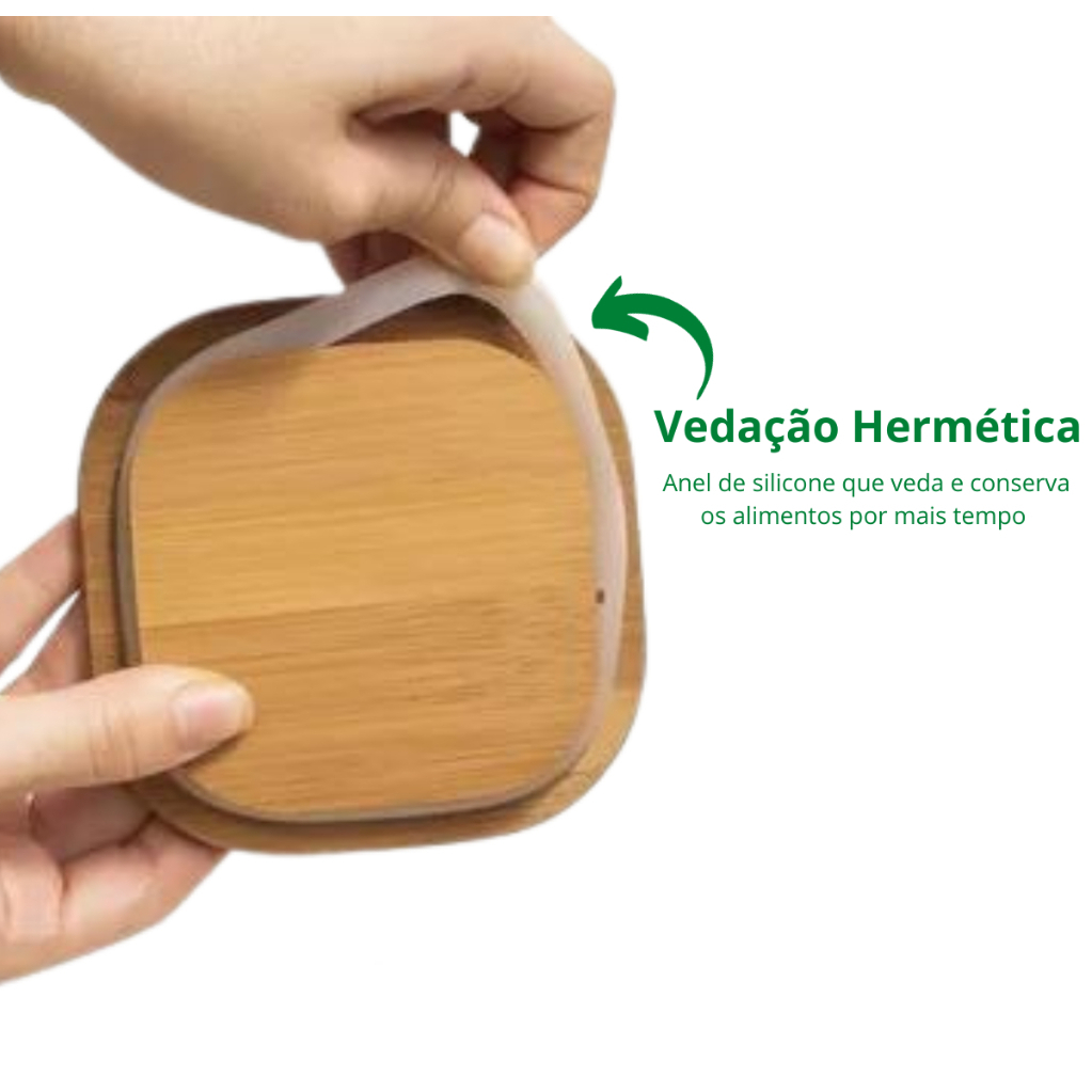 DESCRIÇÃO DO PRODUTO: Pote Hermético Quadrado Armazene grãos, cerais, biscoitos e bolachas, balas, doces e massa. O sistema hermético conversa os alimentos por mais tempo, preservando aroma, aparência, frescor e Crocância. Cabe em qualquer lugar seu formato redondo ajuda a aproveitar melhor o espaço ele encaixa direitinho no canto do armário. tampa hermética: sua tampa possui um anel de vedação de silicone que veda de verdade! ESPECIFICAÇÕES: MATERIAL : Plástico, Tampa similar a bambu DIMENÇÕES : 500ML - 10 x 10 x 9 cm 800ML: 10 x 10 x 14 cm. 1200ML:10.3 x 10.3 x18.6 cm