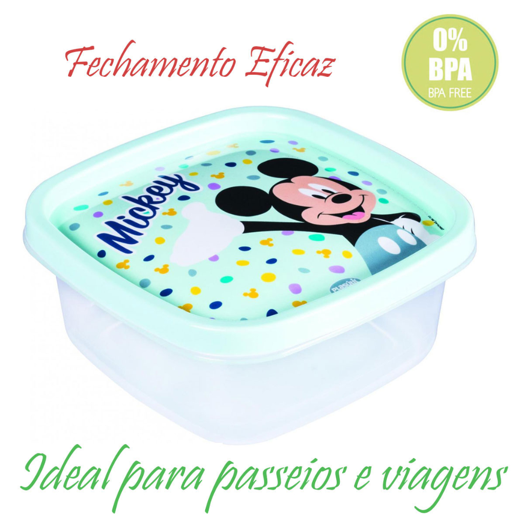 Pote Lancheira Lanche Quadrado Infaltil 580ml Viagens Passeios Disney Mickey Minnie