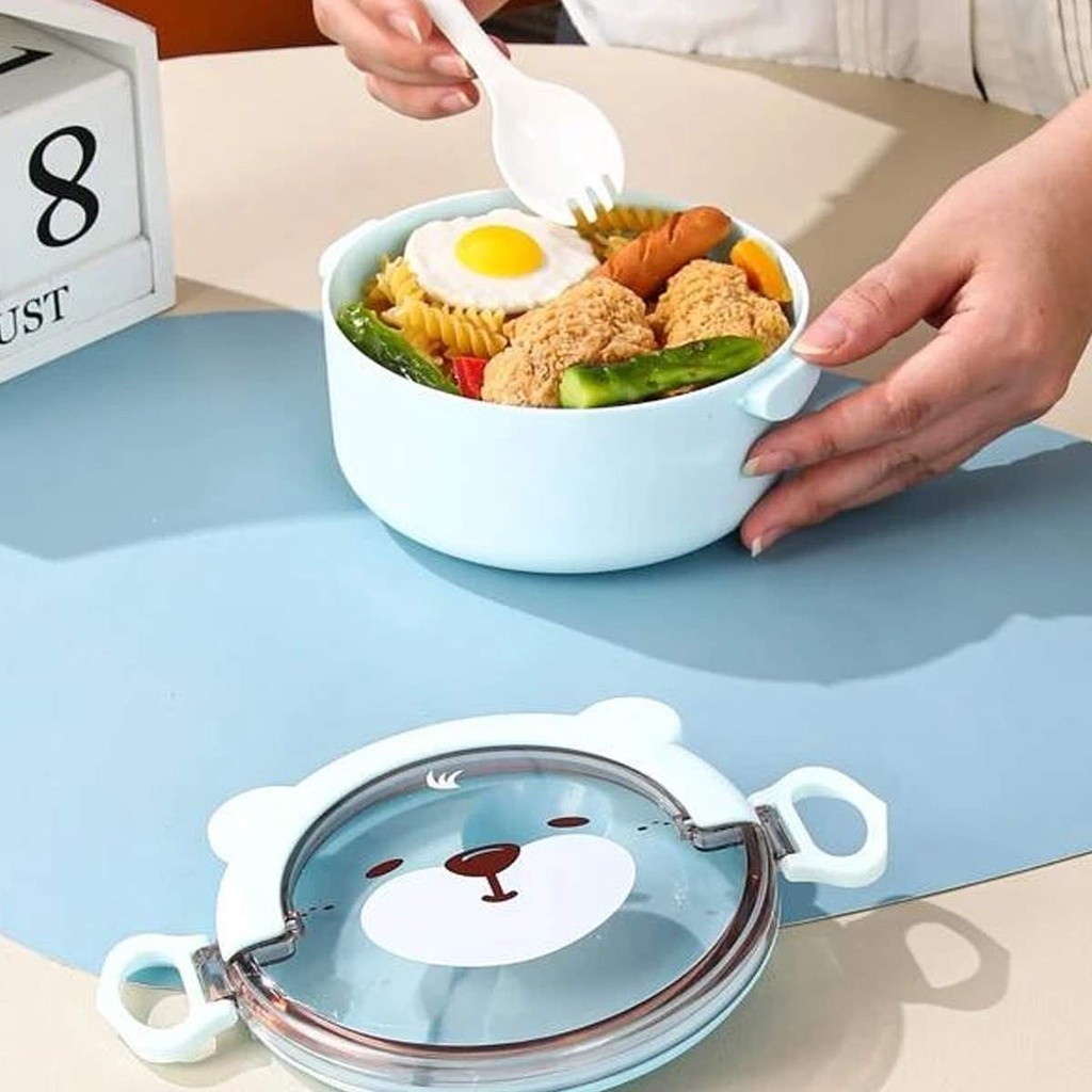 Pote Lancheira Marmita Ursinho Com Talher Infantil Alca Compartimento