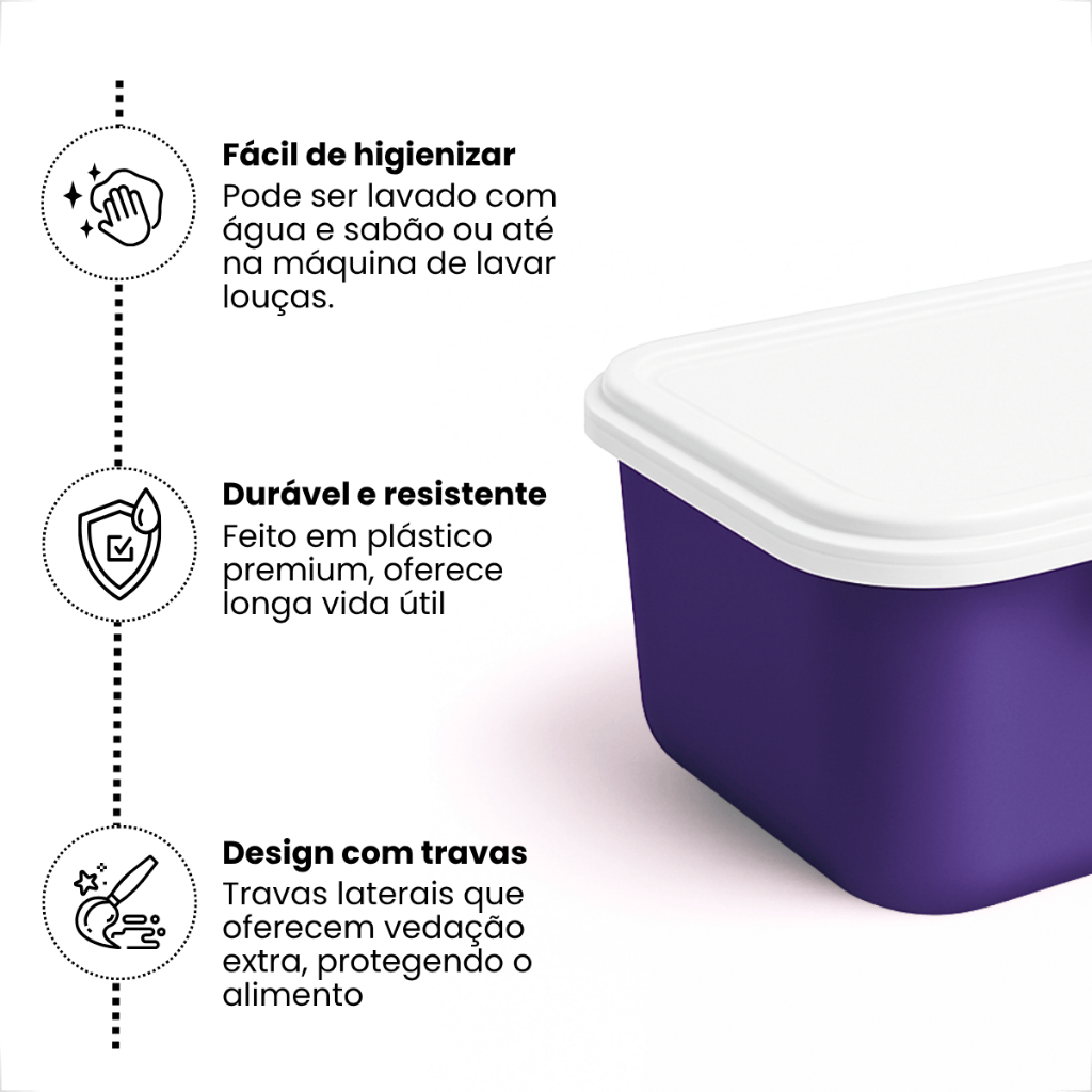 Pote de Plástico Hermetico com Tampa e Trava 1L – Marmita, Dieta, Freezer e Academia Organize suas refeições com praticidade e segurança! Nosso pote plástico com tampa e trava de 1 litro é ideal para marmita, salada, frutas, janta ou dieta. Com vedação firme, ele preserva melhor os alimentos e ainda pode ser levado ao freezer e micro-ondas. Fabricado com plástico livre de BPA e trava lateral eficiente, é perfeito para quem busca praticidade no dia a dia com um design moderno e funcional. ESPECIFICAÇÕES: - Capacidade: 1 Litro - Medidas: 16cm (Comprimento) x 12cm (Largura) x 9cm (Altura) - Material: Plástico livre de BPA - Cores disponíveis: Amarelo, Azul Claro, Laranja, Preto, Rosa, Roxo, Tiffany, Transparente, Verde, Vermelho, Variados DIFERENCIAIS DO PRODUTO: - Com Trava Lateral: Mais segurança no transporte e armazenamento. - Vedação Eficiente: Pode ser usado como pote hermético para manter os alimentos frescos por mais tempo. - Multifuncional: Use como marmita fitness, pote para dieta, salada, frutas, janta ou para congelar refeições. - Vai ao Micro-ondas e Freezer: Resistente a temperaturas quentes e frias. - Fácil de Limpar: Pode ser lavado à mão ou na lava-louças. - Reutilizável e Sustentável: Evita o uso de potes descartáveis, ajudando o meio ambiente. Dica esperta: Ideal para montar kits semanais de marmita ou potes de organização alimentar! Perfeito para quem treina, faz dieta ou simplesmente quer praticidade no dia a dia. Adicione agora ao carrinho e leve mais praticidade, segurança e estilo para sua rotina!