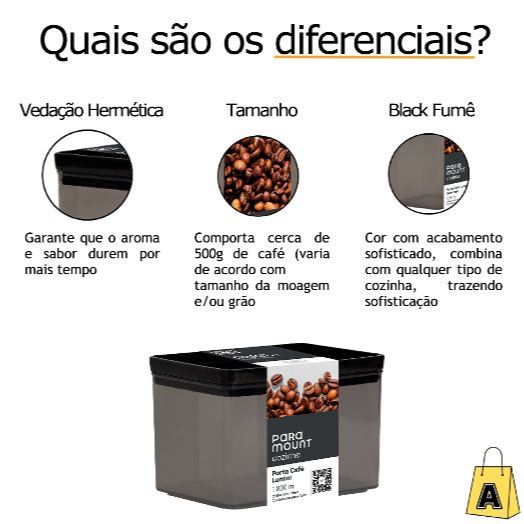 Pote hermético de 1800ml da Paramount, desenvolvido para armazenar e conservar o aroma do seu café em pó ou em grãos. Sua vedação eficiente protege contra a umidade e oxidação, enquanto o design retangular empilhável otimiza o espaço no seu armário. - Capacidade Volumétrica: 1800ml (armazena aproximadamente 500g de café em pó). - Vedação Hermética: Tampa com fechamento seguro que preserva o frescor e as notas do café. - Material: Acrílico de alta resistência, durável e fácil de higienizar. - Design Funcional: Formato empilhável, projetado para organizar sua despensa com praticidade. Perfeito para quem leva o ritual do café a sério e não abre mão de um produto fresco e aromático todos os dias. Uma solução que une a proteção do seu café a um visual limpo e organizado na bancada. Adquira seu porta-café Paramount e garanta a qualidade do seu café da primeira à última xícara. Produto com envio rápido e embalagem segura.