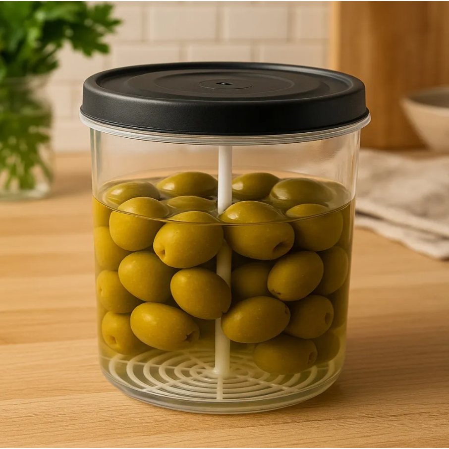 Pote Porta Conserva com Aparador – 1 Litro O Pote Porta Conserva 1L com Aparador foi desenvolvido para trazer mais praticidade na hora de servir suas conservas. Seu exclusivo aparador interno facilita a retirada do alimento sem derramar o líquido, tornando o uso muito mais funcional. Indicação de Uso: Ideal para armazenar e servir azeitonas, pepinos, picles e outros alimentos em conserva Excelente para uso doméstico, restaurantes, bares e cozinhas em geral Características do Produto: Capacidade: 1 litro Possui tampa Produto atóxico (livre de BPA) Aparador interno para facilitar o uso Material: Plástico Cores variadas (enviadas conforme disponibilidade em estoque) Altura aproximada: 15 cm Diâmetro aproximado: 10 cm Praticidade, higiene e organização para o seu dia a dia.