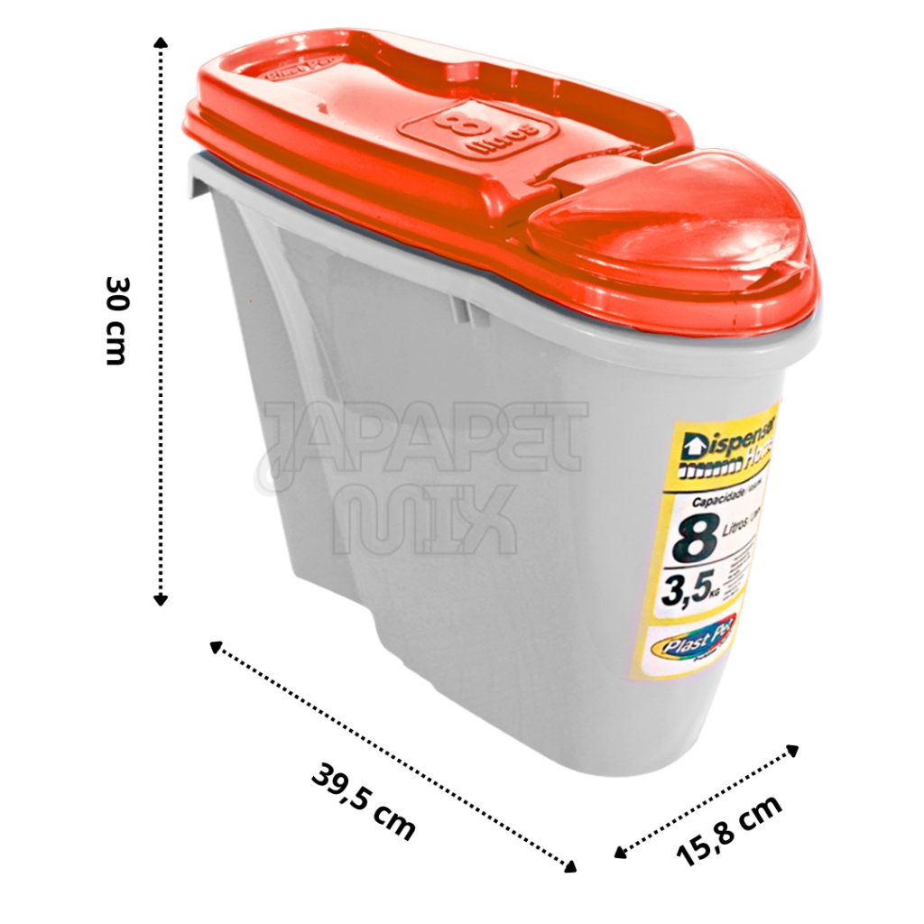 Pote Porta Ração e Grãos Dispenser 8 Litros 3,5 Kg + Pá Dosadora Promoção Envio Imediato – 8 litros que comporta aproximadamente 3,5 kg de grãos. A Plast Pet apresenta o Dispenser Home / Dispenser Home Full, armazenador de ração ou qualquer tipo de grão. Este produto facilita e otimiza o armazenamento do alimento do seu pet em casa pois veda perfeitamente a ração e a mantém em seu perfeito estado.
