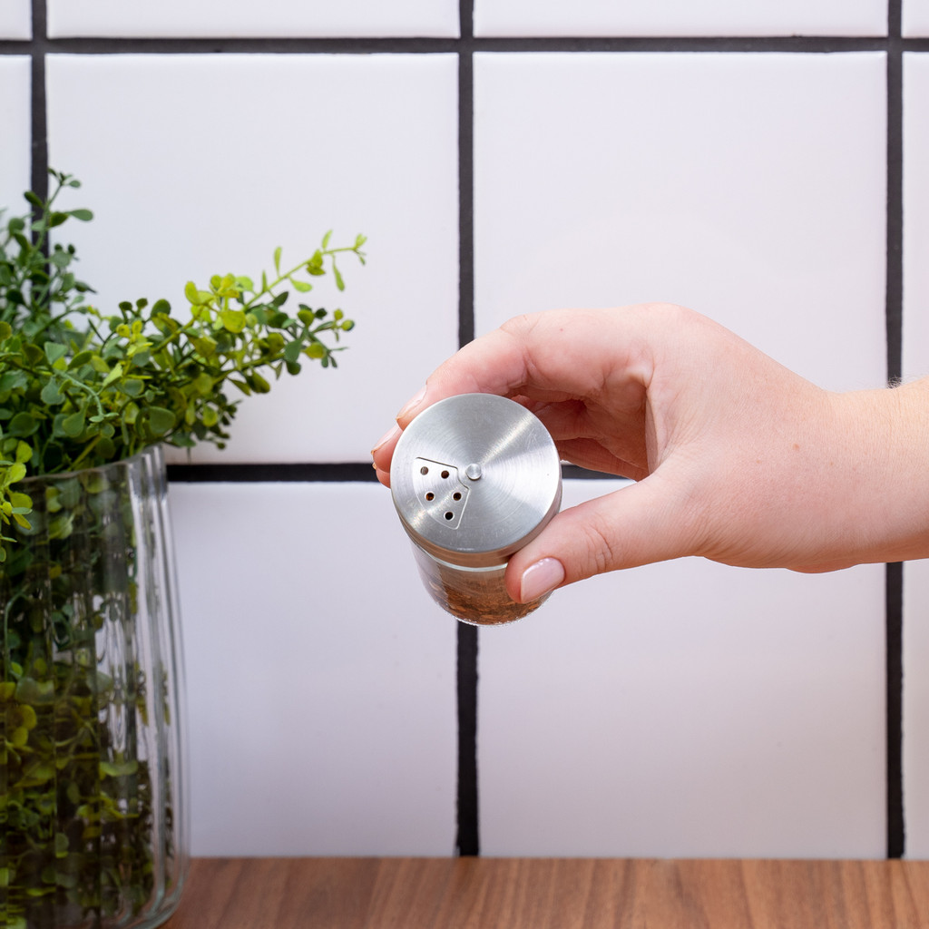 Esse é o porta tempero de vidro com tampa de inox giratória da MOZCADA. Funcional: mais praticidade na hora de temperar e servir. Tampa giratória?: pra escolher a abertura desejada e dar sabor a suas receitas?. Versátil?: pode ser usado para sal, pimenta e outros temperos?. Aço inoxidável?: durável, higiênico e não enferruja. Decorativo: fica bem bonito na mesa e na bancada da cozinha. Dimensões do produto: Altura: 8cm Largura: 5cm