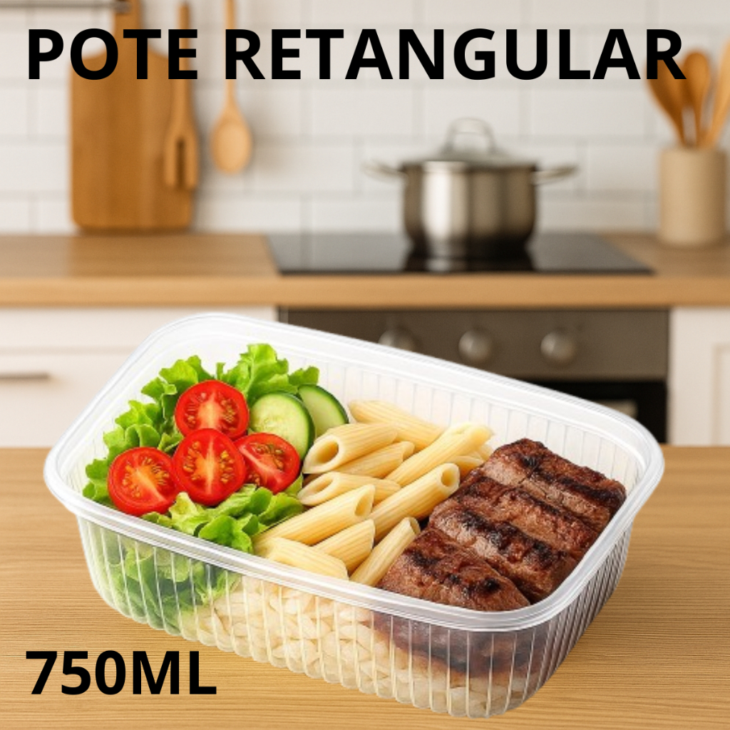 Pote retangular 750ML com tampa microondas e freezer -marmita fitness 20 UN MONTEFRESH