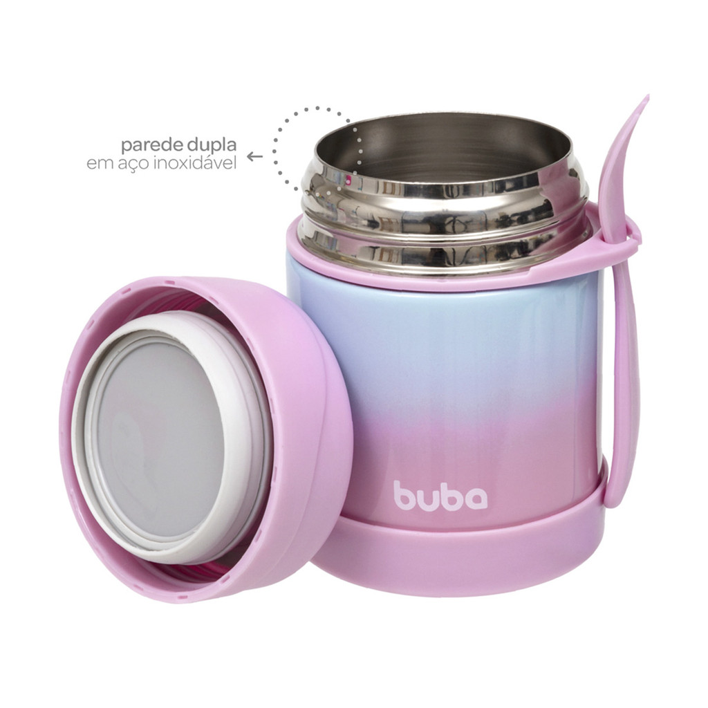 Pote Térmico Buba Inox com Talher Degradê Rosa 320ml