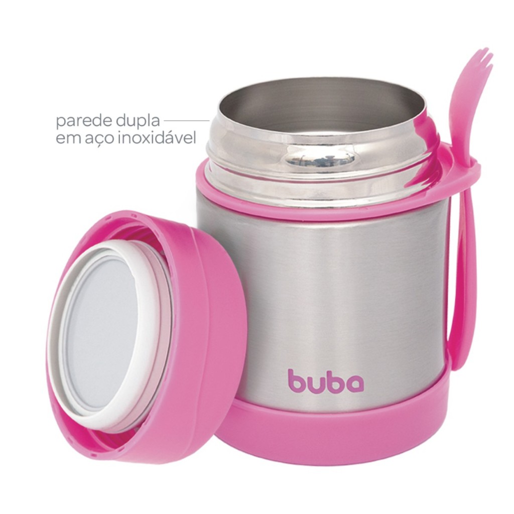 Armazene o alimento do seu seu pequeno com o Pote Térmico com Colher em Aço Inox Com Parede Dupla Buba.O pote térmico veio para facilitar a vida das mamães e dos papais na hora de levar a comida dos pequenos na hora de passear, viajar e até pra escolinha.As refeições serão mais práticas com o Pote Térmico Com Colher Buba! Feito em aço inoxidável, mantém o alimento quente ou frio por mais de 5 horas e ainda contém anel de vedação anti-vazamento.O momento da refeição do seu pequeno é muito importante.Este produto não pode ser fervido, não pode ir à lava-louças e não pode ir ao micro-ondas ou freezer.
