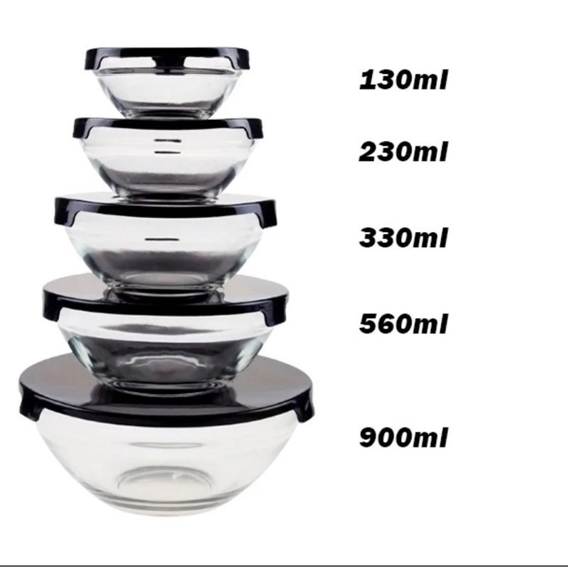Pote Tigela De Vidro Com Tampa Redonda Marmita Cozinha kit/5 unidade