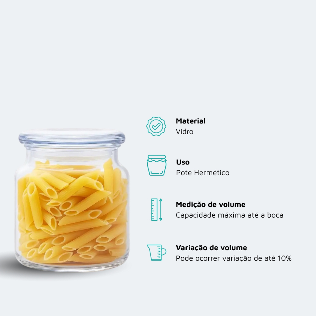 Pote Vidro Hermético Tampa Recipiente Porta Mantimentos Temperos Sementes Castanhas 780ml Ruvolo A oxidação e a umidade são inimigas da conservação de pequenos alimentos, como castanhas e temperos, comprometendo textura e sabor. O Pote Hermético P Ruvolo soluciona este problema com um sistema de fechamento eficiente e corpo totalmente em vidro, criando uma barreira protetora que mantém os ingredientes frescos e organizados, facilitando a rotina na cozinha. Benefícios Principais Este recipiente destaca-se pela fabricação integral em vidro de alta resistência, garantindo durabilidade e total transparência para visualização do conteúdo. A tampa de vidro confere um fechamento hermético que impede a entrada de ar e odores externos. Com capacidade de 780ml, é dimensionado especificamente para porções menores, otimizando espaço sem desperdício. O material é higiênico, fácil de limpar e não altera o sabor dos alimentos armazenados. Compatibilidade e Aplicação Produto indicado para organização de despensas e bancadas. Sua aplicação é ideal para armazenar mantimentos de menor volume, como temperos, sementes, castanhas, frutas secas, snacks e grãos. Não deve ser utilizado com abrasivos e deve-se evitar choques térmicos (mudanças bruscas de temperatura). Especificações Técnicas • Produto: Pote Hermético com Tampa • Modelo: Tamanho P • Material: Vidro (Corpo e Tampa) • Capacidade: 780ml (Volume máximo até a boca) • Altura: 130mm • Diâmetro: 95mm (Largura maior da peça) • Variação Volumétrica: Pode sofrer variação de até 10% do volume • Uso: Multiuso Itens Inclusos 1 Pote de Vidro Hermético com Tampa de Vidro 780ml Ruvolo. Preserve a qualidade dos seus condimentos com a sofisticação Ruvolo. Adquira agora o Pote Hermético P e organize sua cozinha com eficiência. Ruvolo A Ruvolo é uma empresa especializada na produção de copos, taças, canecas e outros produtos de utilidade doméstica em vidro e cristal, oferecendo itens funcionais, resistentes e com design pensado para o uso diário. Trabalha com produtos voltados para praticidade, organização e apresentação, atendendo tanto o uso doméstico quanto opções para presente, sempre com foco em qualidade e bom acabamento. Há mais de 100 anos no mercado, a Ruvolo traz excelência e qualidade para a sua mesa. Pensou em vidro, pensou em Ruvolo.