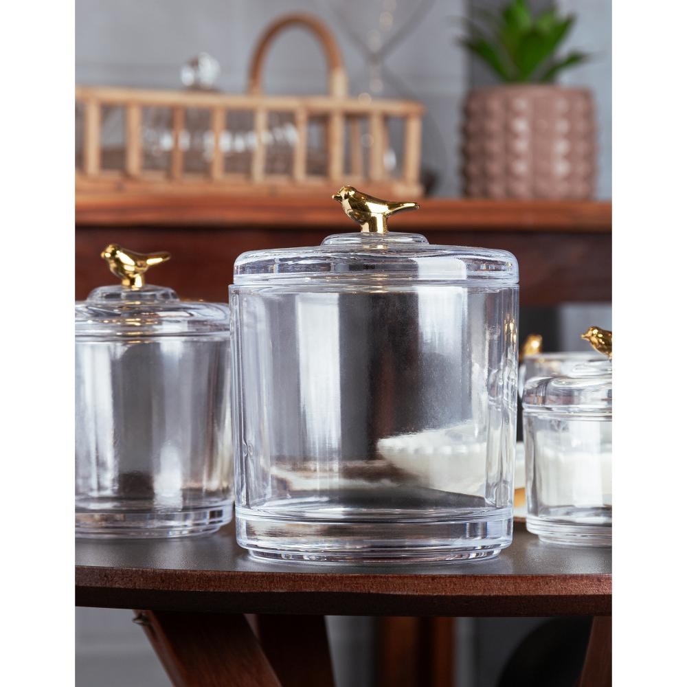 Pote Wolff Golden Bird de Cristal Ecológico com Tampa 8,5cm