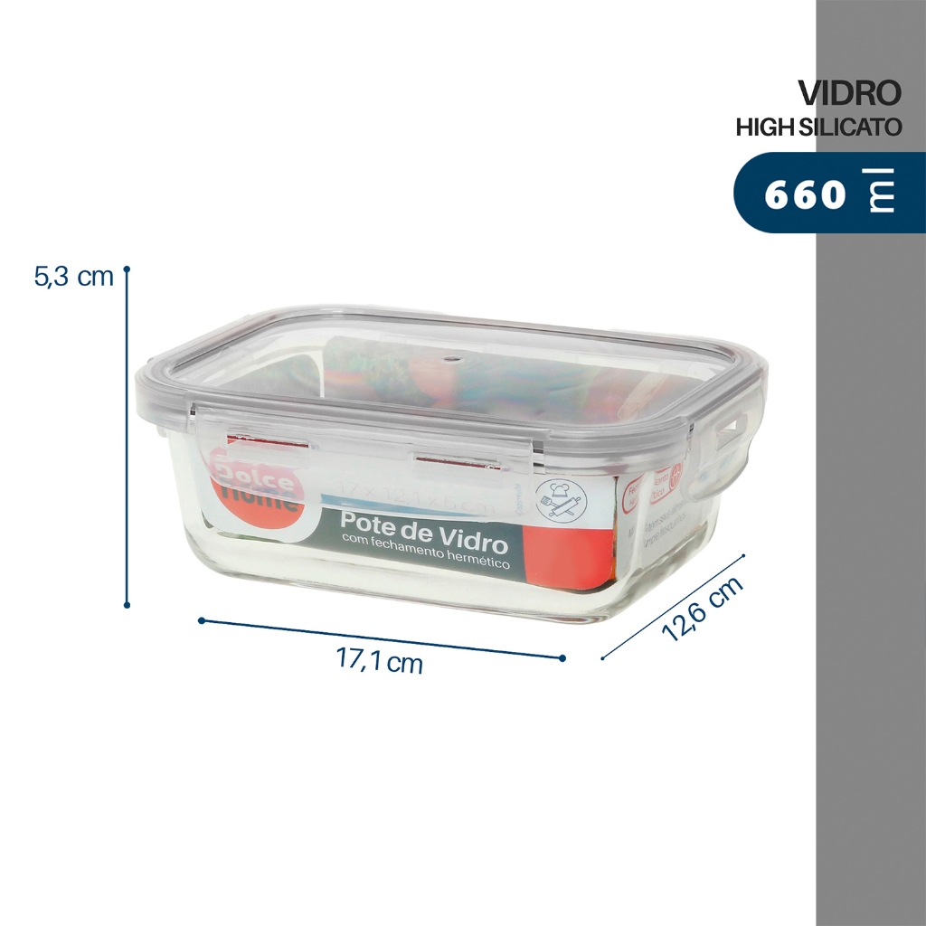 Sua alimentação saudável merece um aliado à altura! Apresentamos o Pote Hermético de Vidro Dolce Home, a solução perfeita para levar suas refeições com praticidade e segurança. Com capacidade de 660ml, você pode armazenar suas marmitas e aquecer no micro-ondas sem preocupações. Imagine poder desfrutar de refeições caseiras fresquinhas a qualquer hora do dia, sem abrir mão da qualidade e do sabor. Com o Pote Hermético de Vidro Dolce Home, você pode levar suas refeições saudáveis para o trabalho, academia ou qualquer lugar que desejar. Especificações: - Produto: Pote de Vidro Hermético 17x12,1x5cm - Material: Pote de Vidro Borosilicato Tampa: PP e Silicone - Capacidade: 660ml - Resistente - Durável - Medida: 17x12,1x5cm - Contém: 1 unidade Não perca mais tempo com recipientes descartáveis e inadequados. Adquira agora mesmo o Pote Hermético de Vidro Dolce Home e comece a desfrutar das vantagens de uma vida mais prática e saudável!