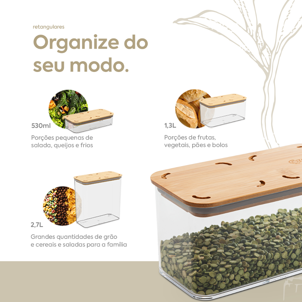 Potes Herméticos com Tampa em Bambu 8 Tamanhos Linha Modo Coza.