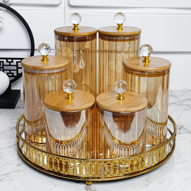 Potes herméticos porta mantimentos com tampa de bambu e vedação em silicone Âmbar com Tampa Cristal