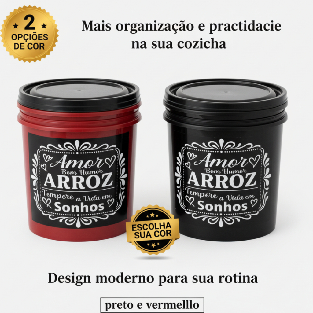 Kit 5 Potes para Mantimentos – Organização, praticidade e cozinha mais bonita no dia a dia Deixe sua cozinha muito mais organizada, funcional e com visual padronizado com este kit de potes para mantimentos. Ideal para armazenar os itens que mais usamos no dia a dia como arroz, feijão, açúcar, café e sal, mantendo tudo bem acomodado, fácil de manusear e com um acabamento que deixa a dispensa/armário com cara de cozinha planejada. Esse conjunto é perfeito para quem quer praticidade na rotina: facilita na hora de guardar, pegar, repor e manter o ambiente mais arrumado. Também é uma ótima escolha para quem gosta de ver os mantimentos separados e na medida certa, evitando bagunça no armário e deixando tudo mais “no lugar”. Medidas e capacidades (aproximadas): Pote de Arroz: 19cm x 18cm — 4,0 Litros Pote de Feijão: 19cm x 18cm — 4,0 Litros Pote de Açúcar: 15cm x 15cm — 2,3 Litros Pote de Café: 11cm x 10,5cm — 1,4 Litros Pote de Sal: 13cm x 12,5cm — 800 ML Diferenciais que fazem a diferença: Kit completo para os mantimentos principais da cozinha Organização mais rápida e visual mais limpo no armário/dispensa Ajuda a manter cada alimento separado e bem distribuído Ótimo para casas, apartamentos, kitnets e área gourmet Excelente para quem busca um conjunto bonito, prático e eficiente Perguntas frequentes (FAQ) As medidas e capacidades são exatas? São aproximadas, podendo ter pequena variação por se tratar de medição manual e capacidade estimada. Posso usar para outros alimentos além de arroz/feijão/açúcar/café/sal? Sim. Você pode usar para outros mantimentos secos, como farinha, macarrão, grãos, cereais e similares, de acordo com o espaço de cada pote.
