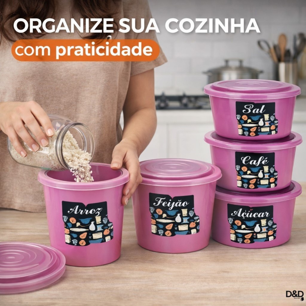 🏠 Kit 5 Potes Mantimentos Plástico Decorado – Organizador de Cozinha Hermético, Porta Alimentos, Porta Mantimentos, Potes Organizadores Organize sua cozinha com muito mais praticidade, beleza e eficiência com o Kit 5 Potes Mantimentos Plástico Decorado ! Ideal para armazenar diversos tipos de alimentos, este conjunto é perfeito para manter sua despensa organizada e seus mantimentos sempre protegidos. Produzidos em plástico resistente de alta qualidade , os potes possuem design moderno e decorado , deixando sua cozinha mais elegante e funcional. São ideais para armazenar arroz, feijão, açúcar, café, macarrão, farinha, grãos, cereais, biscoitos e muito mais. Perfeito para uso em cozinhas, despensas, armários e prateleiras. ✨ BENEFÍCIOS DO PRODUTO ✔ Organiza sua cozinha com praticidade e eficiência ✔ Mantém alimentos protegidos contra umidade e sujeira ✔ Ideal para armazenar mantimentos e alimentos secos ✔ Design moderno e decorado que valoriza sua cozinha ✔ Material plástico resistente e durável ✔ Fácil de limpar e manusear ✔ Tampa com ótimos encaixes e disposições eficientes ✔ Perfeito para uso doméstico e organização de despensa 📦 CONTEÚDO DA EMBALAGEM • 05 Potes organizadores para mantimentos • Material: Plástico resistente • Uso: Armazenamento de alimentos secos 🥫 IDEAL PARA ARMAZENAR • Arroz • Feijão • Açúcar • Café • Macarrão • Farinha • Grãos e cereais • Biscoitos • Salgadinhos e alimentos secos 🏪 PRODUTO IDEAL PARA ✔ Organização de cozinha ✔ Organização de despensa ✔ Uso doméstico diário ✔ Cozinhas modernas e organizadas