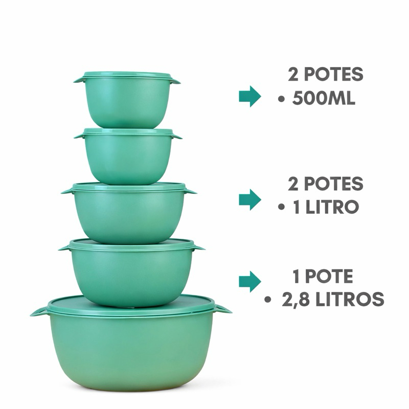 # Kit Potes Plásticos Redondos Bowl com Tampa - 5 Unidades *2 unidades bowl com tampa - 500ml *2 unidades bowl com tampa - 1.000ml *1 unidade bowl com tampa - 2.800ml **Organização Prática e Segura para sua Cozinha** O Kit com 5 Potes Plásticos Redondos Bowl com Tampa é a solução perfeita para quem busca praticidade e organização na cozinha. Fabricados em plástico resistente e livre de BPA, estes potes garantem o armazenamento seguro de alimentos, preservando frescor e sabor por muito mais tempo. Com design funcional e versátil, são ideais para uso no freezer, geladeira e microondas. Cada pote possui tampa com fechamento hermético que evita vazamentos e mantém os alimentos protegidos contra contaminação. O formato redondo bowl facilita o empilhamento e otimiza o espaço em sua geladeira ou armário. Perfeitos para armazenar sobras, preparar marmitas, organizar ingredientes ou até mesmo servir alimentos diretamente à mesa. Desenvolvidos com material de alta qualidade, estes potes são duráveis, fáceis de limpar e podem ser utilizados diariamente sem perder suas propriedades. Invista em organização inteligente e segurança alimentar para toda sua família. ## BENEFÍCIOS PRINCIPAIS - Material livre de BPA garantindo segurança alimentar para toda família - Versátil para uso em freezer, geladeira e microondas sem comprometer a qualidade - Tampa com vedação eficiente que previne vazamentos e mantém alimentos frescos - Design empilhável que economiza espaço e facilita a organização - Resistente a manchas e odores, mantendo-se como novo por mais tempo - Fácil limpeza, podendo ser lavado à mão ou na máquina de lavar louças - Kit completo com 5 unidades para diversas necessidades de armazenamento ## COMO USAR **Armazenamento em Geladeira:** Coloque os alimentos nos potes, feche bem a tampa e armazene na geladeira. Ideal para sobras de refeições, frutas cortadas, saladas e ingredientes preparados. **Congelamento:** Para congelar, deixe um pequeno espaço vazio no pote pois os alimentos expandem ao congelar. Feche bem a tampa e leve ao freezer. Perfeito para congelar porções individuais de sopas, caldos e preparos caseiros. **Aquecimento no Microondas:** Retire a tampa antes de aquecer. Aqueça o alimento no pote e aguarde alguns segundos antes de manusear. Após o aquecimento, tampe novamente para manter a temperatura. **Organização de Ingredientes:** Use os potes para separar e organizar ingredientes como temperos, grãos, cereais e snacks. ## CARACTERÍSTICAS TÉCNICAS **Material:** Plástico resistente BPA Free (livre de Bisfenol A) **Quantidade:** 5 unidades de potes com tampa com tamanhos variados **Formato:** Redondo bowl **Cor:** Variáveis de acordo com a seleção do cliente **Temperatura de Uso:** - Freezer: até -20°C - Microondas: até 120°C (somente o pote, sem a tampa) - Geladeira: 0°C a 8°C **Características do Fechamento:** Tampa com vedação hermética **Design:** Empilhável para economia de espaço **Limpeza:** Lavável à mão ou em máquina de lavar louças **Uso:** Multiuso - armazenamento, congelamento, aquecimento e transporte de alimentos **Certificação:** Livre de BPA conforme normas de segurança alimentar **Durabilidade:** Alta resistência a impactos, manchas e odores ## PERGUNTAS FREQUENTES **1. Os potes podem ir ao microondas com a tampa?** Não, a tampa deve ser retirada antes de aquecer os alimentos no microondas. O pote pode ser aquecido sem problemas, mas a tampa não é apropriada para microondas pois pode deformar com o calor intenso. Após o aquecimento, aguarde alguns segundos, retire cuidadosamente o pote do microondas e coloque a tampa novamente para manter a temperatura do alimento. **2. O que significa BPA Free e por que isso é importante?** BPA Free significa que o produto é livre de Bisfenol A (BPA), uma substância química presente em alguns plásticos que pode migrar para os alimentos, especialmente quando aquecidos. O BPA é considerado um disruptor endócrino e seu uso em produtos alimentícios tem sido evitado. Nossos potes são fabricados com plástico seguro, sem BPA, garantindo que nenhuma substância nociva contamine seus alimentos, protegendo a saúde de toda sua família. **3. Posso usar os potes para congelar alimentos por quanto tempo?** Sim, os potes são perfeitamente adequados para congelamento e podem manter alimentos congelados com segurança por até 3 meses, dependendo do tipo de alimento. Lembre-se de deixar um espaço livre abaixo da borda, pois os alimentos expandem ao congelar. Para descongelar, você pode deixar o pote na geladeira overnight ou aquecer diretamente no microondas após retirar a tampa. **4. Como fazer a limpeza correta dos potes para que durem mais tempo?** Os potes podem ser lavados à mão com detergente neutro e esponja macia ou na máquina de lavar louças no ciclo normal. Evite usar esponjas abrasivas ou palha de aço que podem arranhar o plástico. Seque bem antes de guardar para evitar acúmulo de umidade.