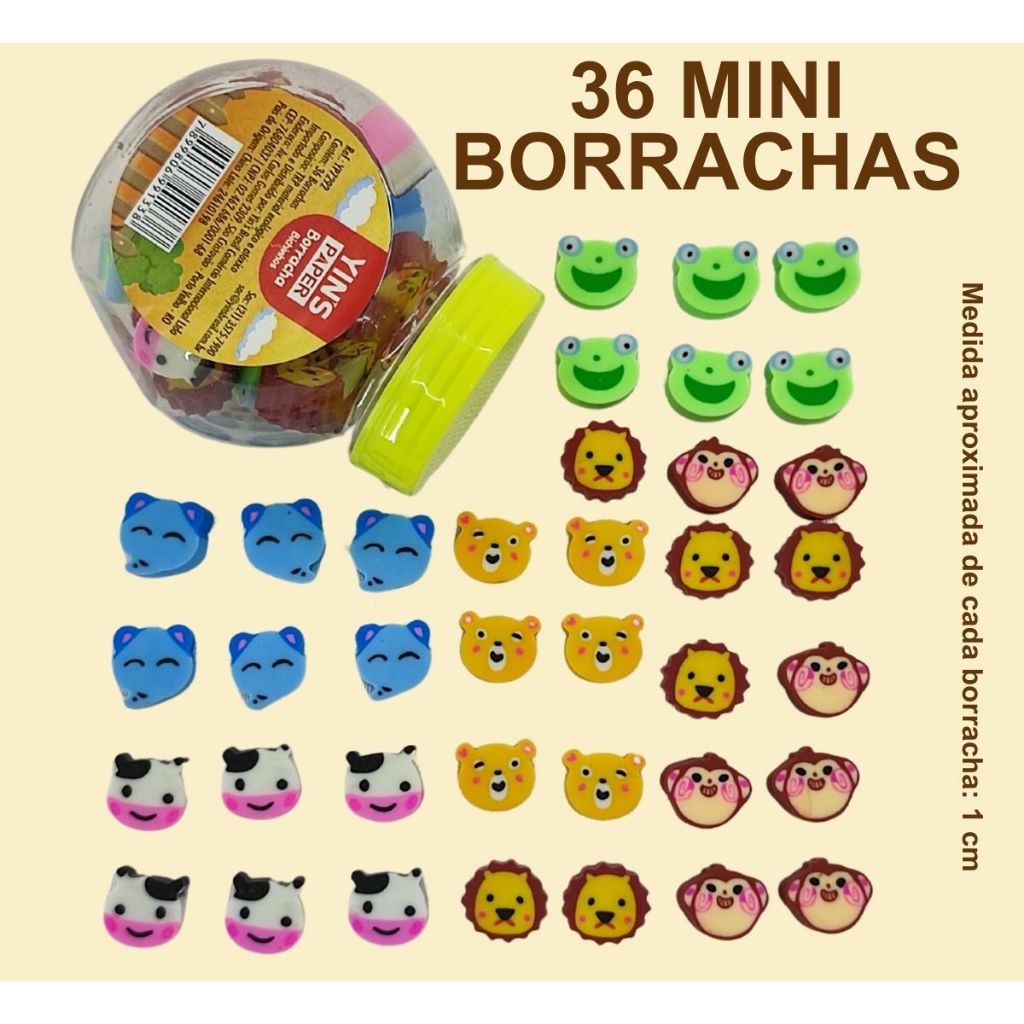 Potinho com 36 Mini Borrachas em Formato de Bichinhos – Yin’s Paper