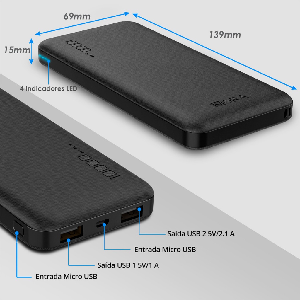 Power Bank 10.000 mah 1 Entrada Tipo C e 2 Entradas USB GAR094 1HORA Carga Rápida