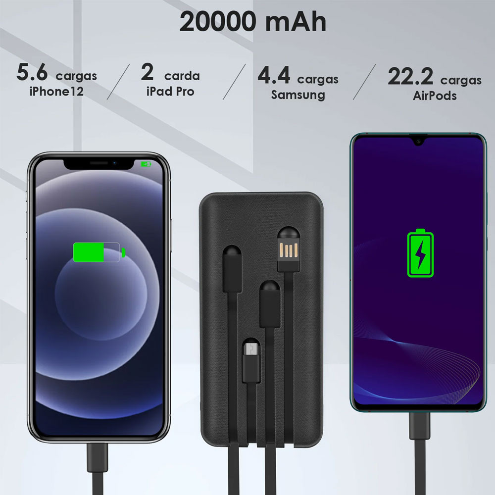 Power Bank 20000mAh 1Hora Bateria Portátil Gar159n Preto