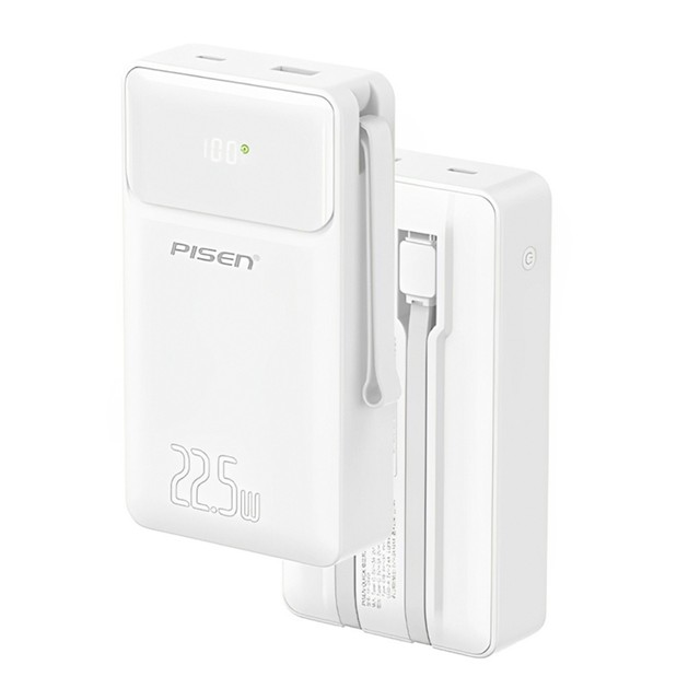 Power Bank 20000mAh Pisen 2 in 1 Cabo Usb C/Ios Branca