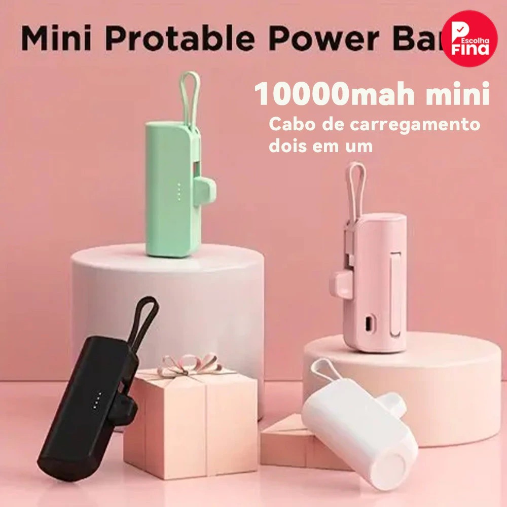 Power Bank Mini Emergencial Sem Fio 2em1 - Bateria Portátil para iPhone e Celulares com USB-C MNCDB