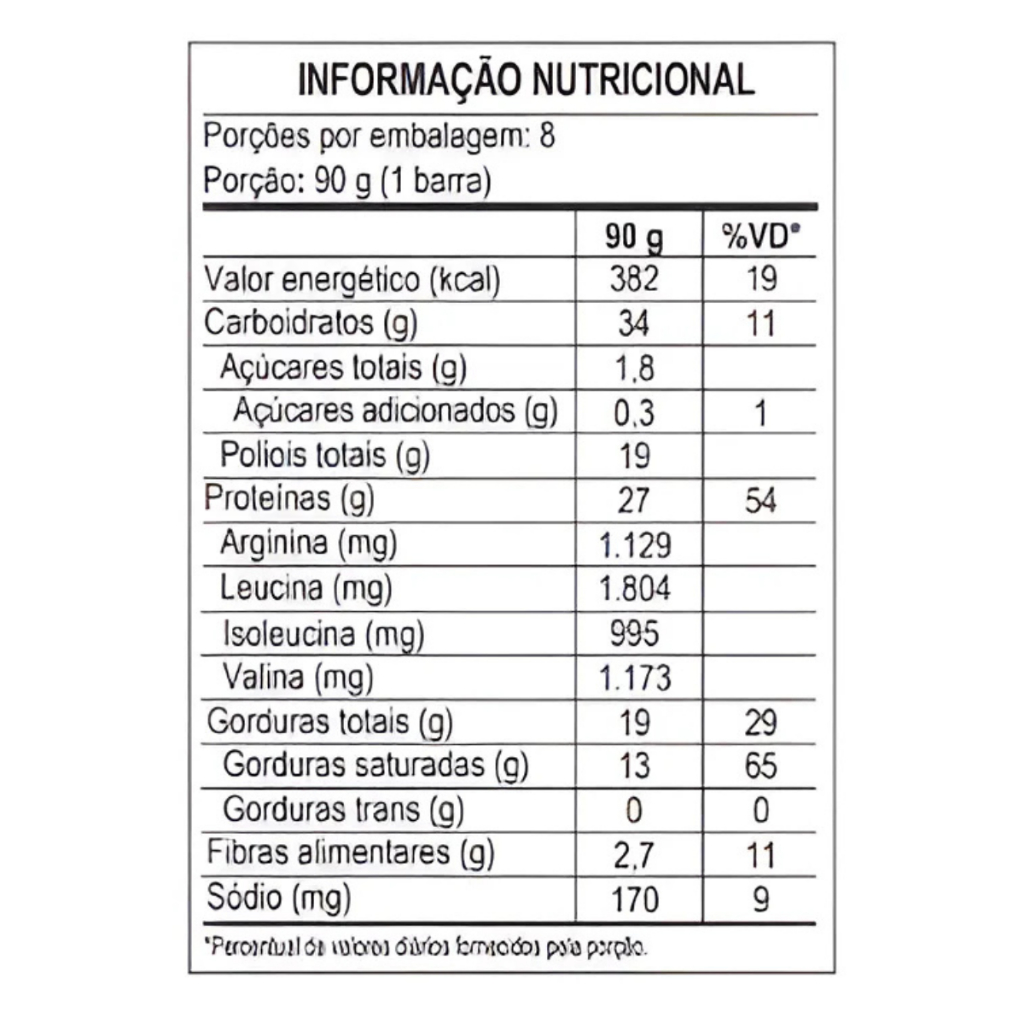 Power Protein Bar Max Titanium Bombom Avelã - Caixa com 8 Unidades de 90g A Power Protein Bar Max Titanium Bombom Avelã é uma barra proteica desenvolvida para quem busca uma opção prática, saborosa e nutritiva para complementar a alimentação e auxiliar na recuperação muscular. Com alto teor de proteínas e um delicioso sabor de bombom com avelã, é ideal para atletas e praticantes de atividades físicas que desejam potencializar seus resultados. Principais Características: - Alto teor proteico: Contém uma quantidade significativa de proteínas de alta qualidade, essenciais para a recuperação e o crescimento muscular. - Sabor irresistível: Combinação perfeita de bombom com avelã, proporcionando uma experiência deliciosa a cada mordida. - Praticidade: Embalagem individual, ideal para consumo rápido no dia a dia, seja no pós-treino ou como lanche entre as refeições. Benefícios: - Auxilia na construção e recuperação muscular; - Fonte de energia de longa duração; - Opção nutritiva para complementar a alimentação; - Conveniente para levar na bolsa ou mochila. Diferenciais do Produto: - Elaborado pela Max Titanium, marca reconhecida pela qualidade em suplementos; - Ingredientes selecionados para um melhor aproveitamento nutricional; - Sabor sofisticado que agrada aos paladares mais exigentes. Especificações Técnicas: - Peso: 720g (8 barras de 90g cada). Instruções de Uso: - Consumir uma barra entre as refeições ou conforme orientação de um profissional da saúde. Avisos e Precauções: - Este produto não substitui uma alimentação equilibrada. - Conservar em local seco e fresco, ao abrigo do sol e da umidade. - Alérgicos: Contém derivados de leite, soja e avelã. O que está incluso? - 1 Caixa com 8 unidades de 90g cada da Power Protein Bar Max Titanium Bombom Avelã. ---- Dúvidas Frequentes ---- Os produtos são originais? Sim. Todos os nossos produtos são originais. Emitem nota fiscal? Sim. Emitimos nota fiscal para todos os pedidos.