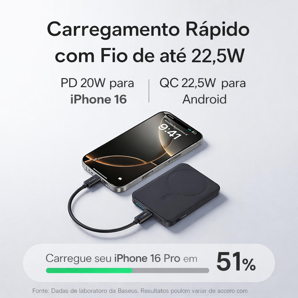 Powerbank Baseus EnerFill FM11 10000mAh 22.5W Magnético Mag Safe Ultra Mini + Cabo Type-C