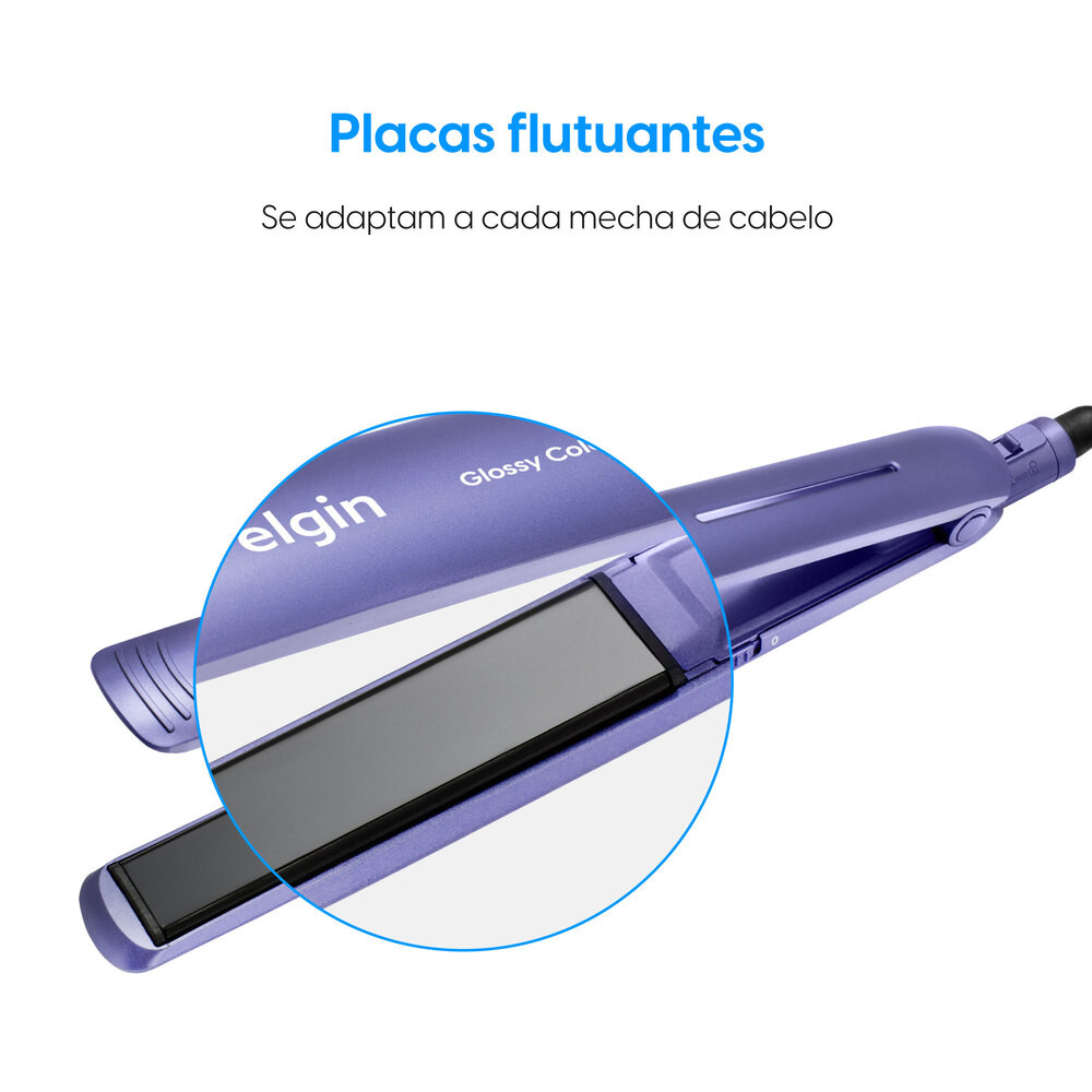 Prancha Alisadora Glossy Color Elgin Tourmaline íon, Trava de segurança Roxo, Chapinha Bivolt