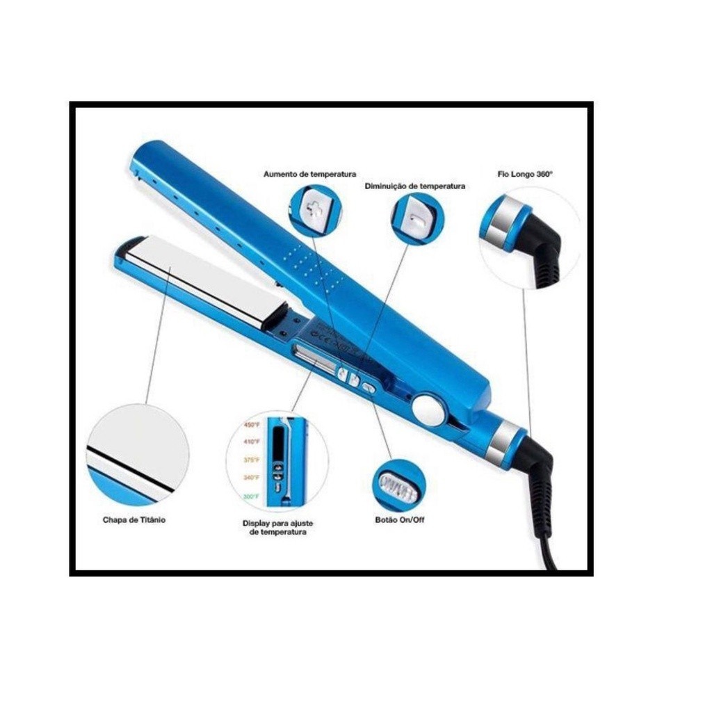 Prancha Chapinha Alisadora Profissional 232°C AZUL BIVOLT PRONTA PARA ENVIA