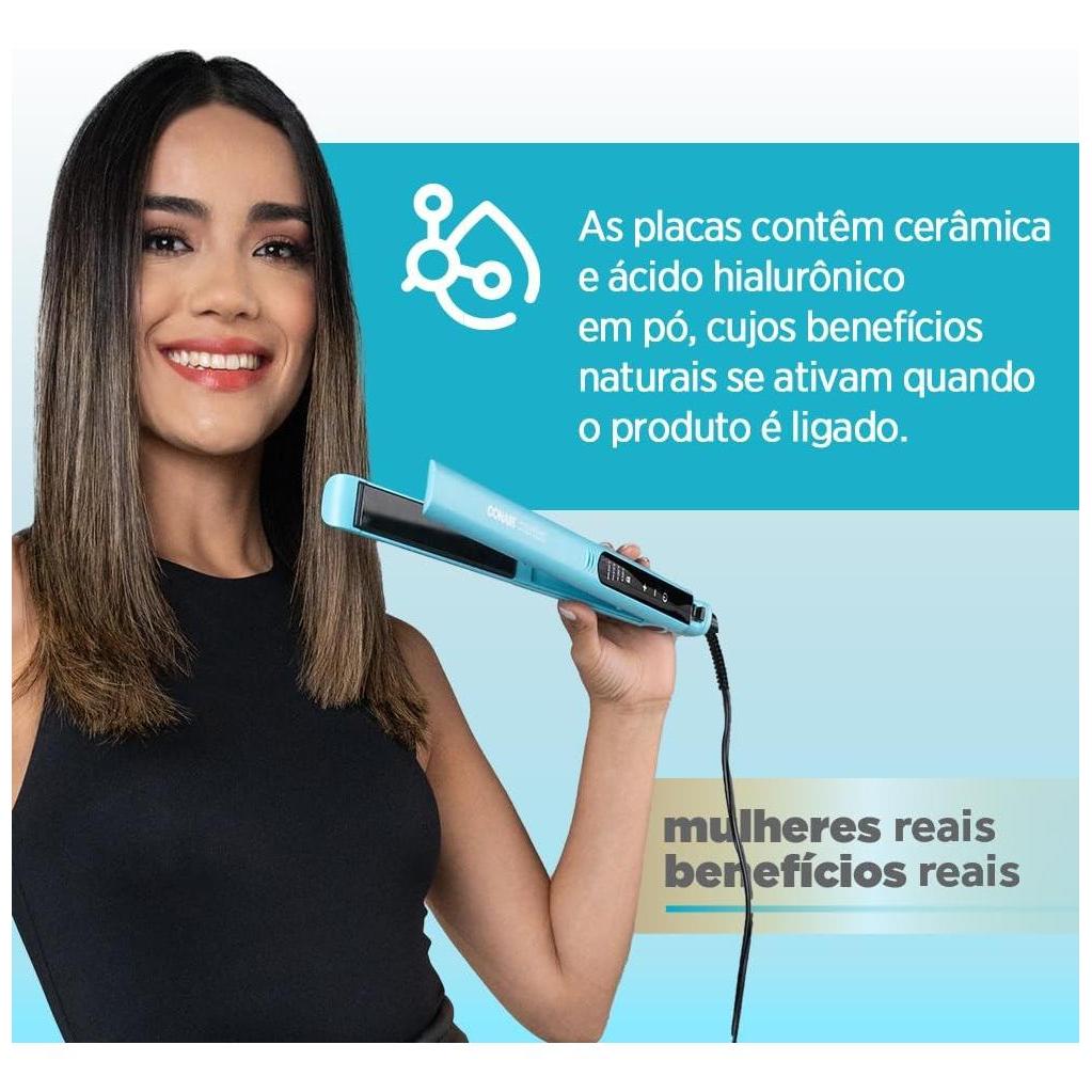 Prancha de Cabelo Conair com Infusão Hialurônica Digital Chapinha 25mm Bivolt 4 Temperaturas - Azul