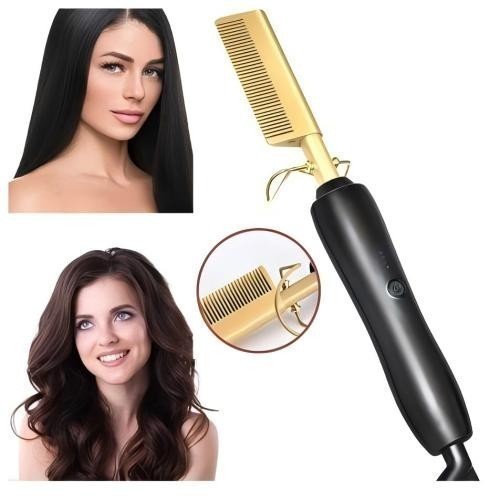 Otimize seu tempo e conquiste sem esforço cabelos lindos com o Pente Elétrico Alisa e Modela Aquecimento Multifuncional. Os mais grossos e macios têm um alisamento perfeito em todos os tipos de cabelo, incluindo os mais grossos e crespos. Características: - Os dentes de pente de aquecimento proporcionam calor uniforme sem agredir o cabelo, deixando-o lindo, sem frizz e brilhante. O pente elétrico possui 3 configurações de temperatura, permitindo personalização de acordo com o tipo de cabelo. - Possibilidade de alisar e modelar, permitindo criar penteados requintados. O suporte Anti-queimadura evita que a área de aquecimento entre em contato com superfícies. Cabo de alimentação giratório, evitando o emaranhamento e proporcionando maior praticidade durante o uso. Informações do Dispositivo: Modelo: WT-044 Potência - Potência: 80W - Tensão: 110V-220V Liga de titânio - Temperatura: 1 = 160o 2 = 180o 3 = 200o Liga de titânio ecológico - Material: Liga de titânio ecológico Tempo de aquecimento: 60 segundos Frequência: 50/60Hz Desligamento automático: 60 minutos Conteúdo da Embalagem: 1 pente elétrico