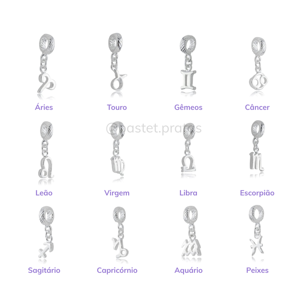 PRATA 925 Berloque Signos do Zodiaco Todos os signos pingente