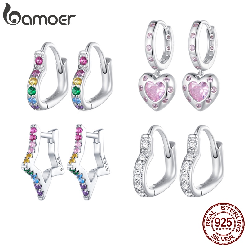 Prata Bamoer 925 Sterling Simples Coração Colorido E/Brincos Estrela Jóias De Moda Para Mulheres Em Presentes De Aniversário