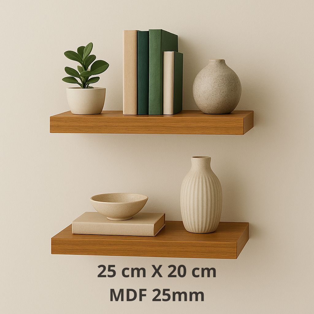 Deixe seus ambientes mais elegantes e organizados com as prateleiras de parede com suporte invisível, que garante um visual limpo, moderno e sofisticado. Ideal para sala, quarto, escritório, cozinha ou banheiro! 🔹 Dimensões (cada prateleira): 25 cm (comprimento) x 20 cm (profundidade) 🔹 Material: MDF 25mm de alta qualidade 🔹 Cor: Freijó Mel 🔹 Suporte invisível: fixação oculta, mais estética e segurança 🔹 Capacidade: Perfeitas para apoiar livros, vasos, quadros, porta-retratos e objetos decorativos 🔹 Fácil instalação – acompanha kit de fixação e manual 📦 Pronta entrega com envio em até 24h úteis ✅ Produto nacional com garantia Design clean e versátil que combina com qualquer estilo de decoração. Valorize sua parede com praticidade e bom gosto!