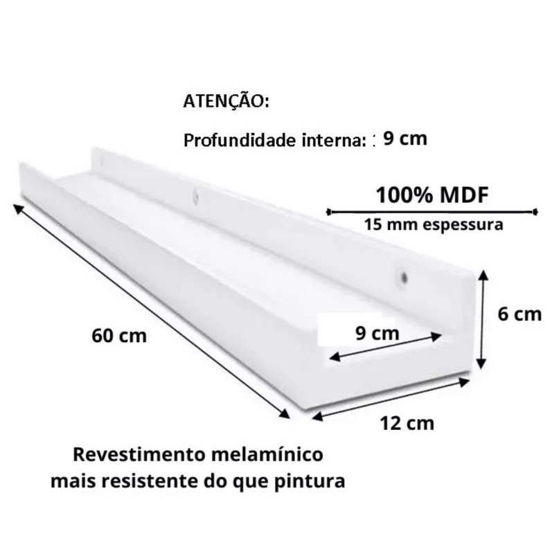 Prateleira Canaleta Calha Suspensa 12cm x 40/50 e 60 cm Porta Temperos, Livros, Fotos