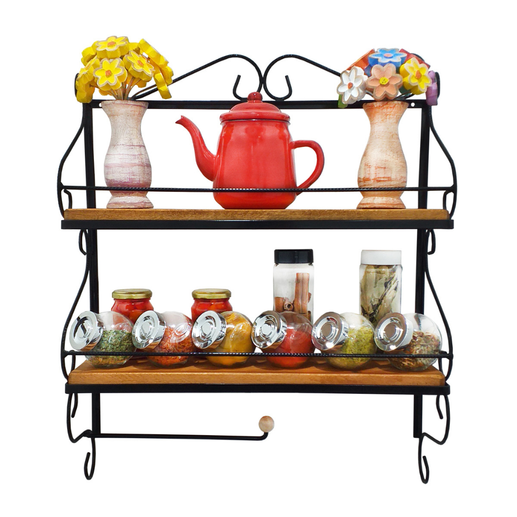 Mantenha seu ambiente decorado e organizado com essa linda prateleira de parede, produto multifuncional, resistente e durável. Indicada para os mais diversos tipos de ambientes, muito utilizada na organização de condimentos e utensílios domésticos. Produto fabricado com materiais de qualidade, possui estrutura em ferro maciço com acabamento em pintura eletrostática na cor preto (resistente à ferrugem e arranhões superficiais), prateleira em madeira de reflorestamento tratada, com acabamento em cera de carnaúba e selador, deixando a madeira impermeabilizada (não mancha em contato com a água), facilitando sua limpeza e higienização. Possui suporte para papel toalha ou pano de prato. Este produto é totalmente artesanal, extremamente resistente e durável. DIMENSÕES altura: 60 cm / comprimento: 50 cm / profundidade: 17 cm OBSERVAÇÕES Produto inteiramente artesanal fabricado em ferro e madeira maciça, podendo apresentar pequenas variações em suas dimensões, tonalidade da madeira, texturas irregulares ou pequenos respingos de solda, aspectos visuais que são características bem particulares deste tipo de produto. Todos os nossos produtos são inspecionados antes do envio e bem embalados para transporte. Os enfeites utilizados para decoração não acompanham o produto. TODOS OS NOSSOS PRODUTOS ACOMPANHAM NOTA FISCAL TUDO À PRONTA ENTREGA