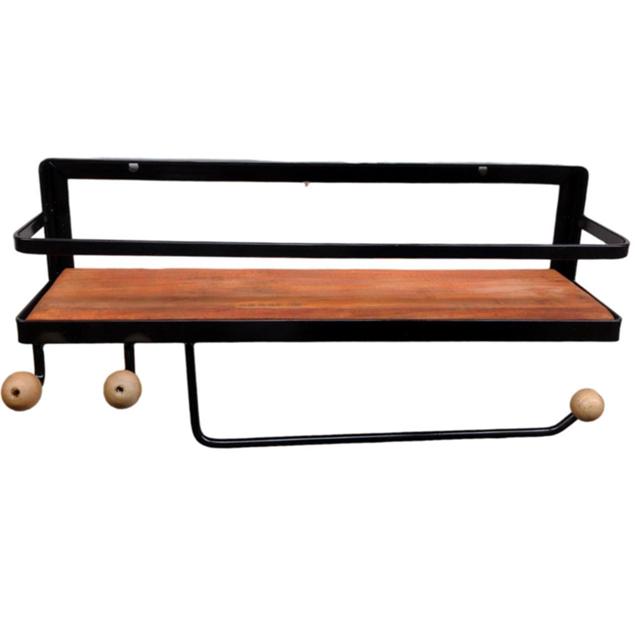 Prateleira de parede 1 andar com 2 ganchos e porta papel toalha porta tempero